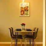 This 77 m^2 apartment features a fully furnished kitchen equipped with a microwave, a fridge, and kitchenware. Self-catering facilities also include tea/coffee making equipment. Offering European dishes, Barrels Pub Mamaia is 550 metres away. Tabara Nord bus stop is 150 metres from Lago Apartment Mamaia Butoaie.